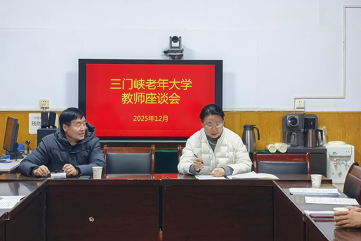 2025年12月30日下午,三门峡老年大学在会议室6202召开期末教师座谈会,书法、合唱、电吹管、柔力球、形体舞蹈、剪纸等六个特色教学班及开放大学的全体教师齐聚一堂,大家畅所欲言,谈感悟,提建议,互动频频,气氛热烈。