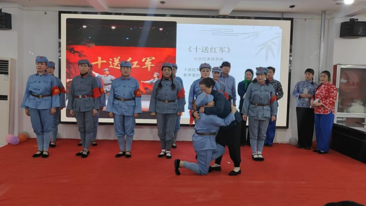 经典诵读结束后,文艺汇演精彩呈现。由三门峡市文化志愿者协会、三门峡老年大学颜萍仪态形体美学班学员带来的红色情景剧《十送红军》、压轴节目《花开中国》将活动现场氛围推向高潮。
